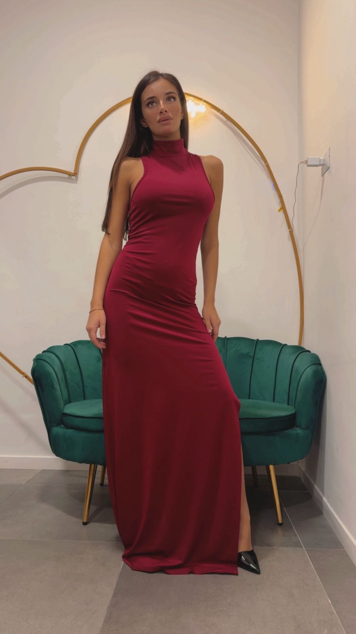 Abito lungo, collo alto, giro maniche , taglia unica .